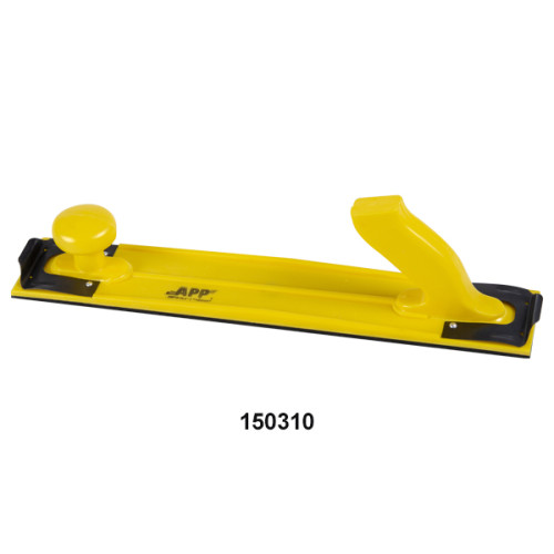 Ручний плоский рубанок призначений для шліфування великих плоских поверхонь. Дерев'яна ручка та робочий майданчик, виконаний з алюмінію, забезпечує рівномірність шліфування та невелику вагу інструменту. Можна використовувати абразивний папір у рулонах або стрічках. Рубанок, виготовлений із пластмаси, призначений для шліфування великих поверхонь, а завдяки гнучкості поверхонь, що мають невелике викривлення. Для кріплення паперу призначені два затискачі, які забезпечують припасування абразивного матеріалу до робочої плити.