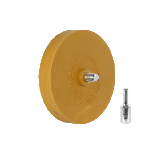 Диск із твердого каучуку для механічного видалення двосторонніх клейких стрічок, наклейок та декоративних стрічок з кузова без пошкодження лаку. Aдаптер дозволяє кріпити коло до шліфувальних машин та дрилів.