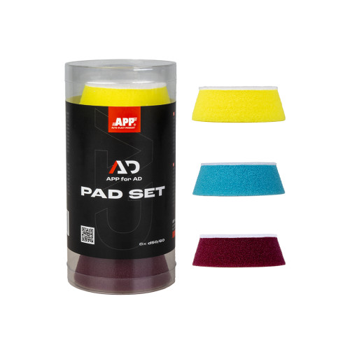 APP for AD Pad SET - це набір професійних полірувальних губок з відкритими порами для комплексного триетапного полірування кузова автомобіля. Їх ідеально підібрані розміри та форми забезпечать високий комфорт роботи як на вигнутих, так і плоских поверхнях.