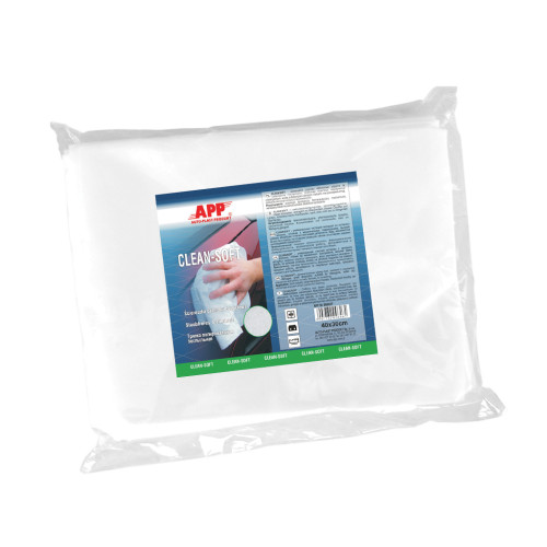 APP Clean Soft – спеціалізована неткана полірувальна серветка, виготовлена із суміші віскози та поліестеру (70/30). Не припадає пилом, не залишає розлучень і бруду. Дуже поглинаюча, міцна і стійка до механічних пошкоджень.