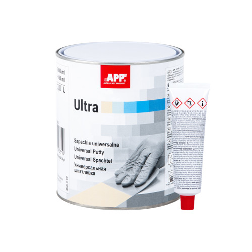 Шпаклівка універсальна AРР ULTRA - легка двокомпонентна поліестрова заповнююча шпаклівка. Після затвердіння стійка до дії розчинників, кислот, лугів та соляних розчинів невисокої концентрації. Шпаклівка AРР ULTRA характеризується високою еластичністю, механічною та термічною стійкістю, легко накладається та обробляється.